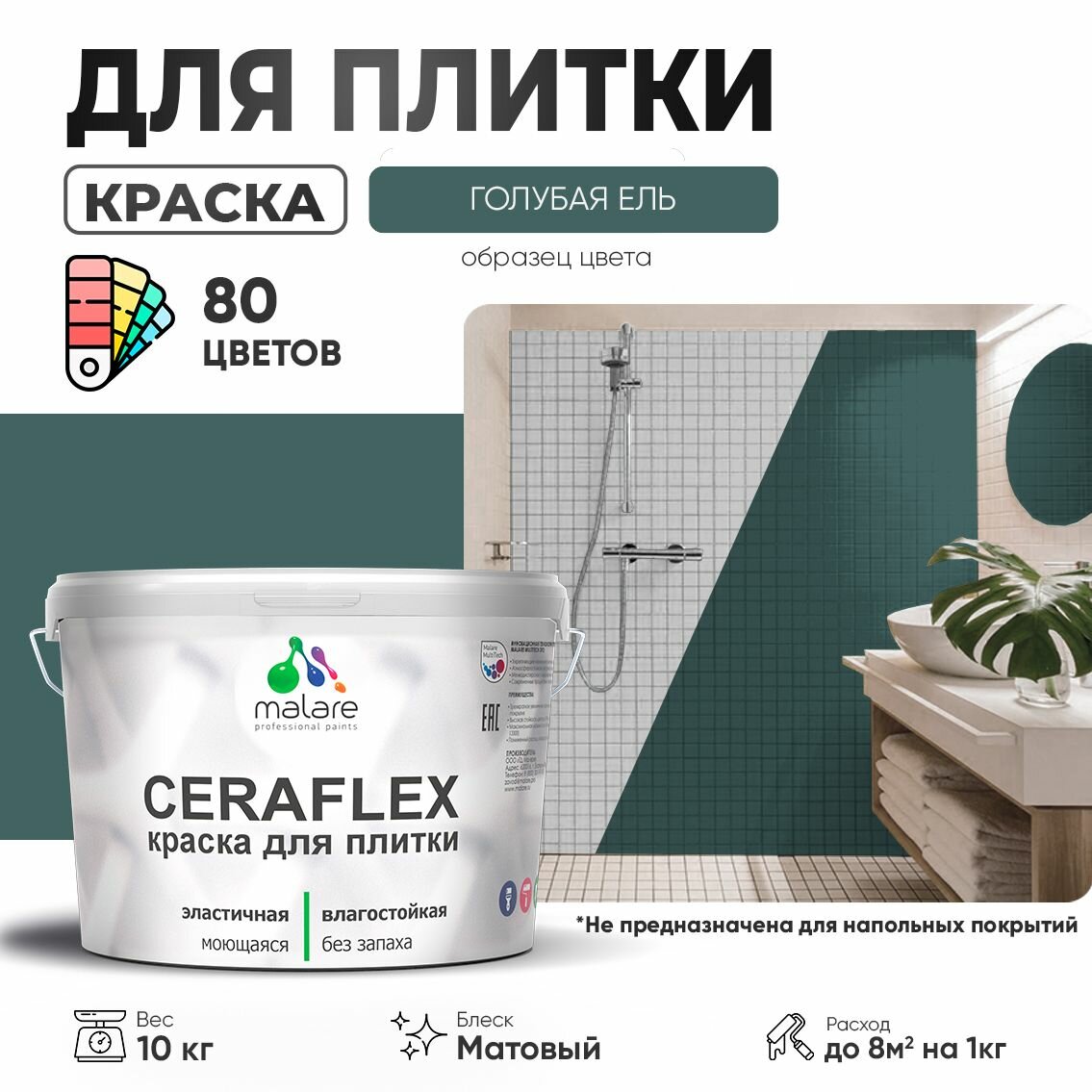 Купить Акриловая краска для плитки Malare Ceraflex для керамической и кафельной плитки, стен в кухне и ванной, моющаяся быстросохнущая без запаха, матовая, голубая ель, 10 кг