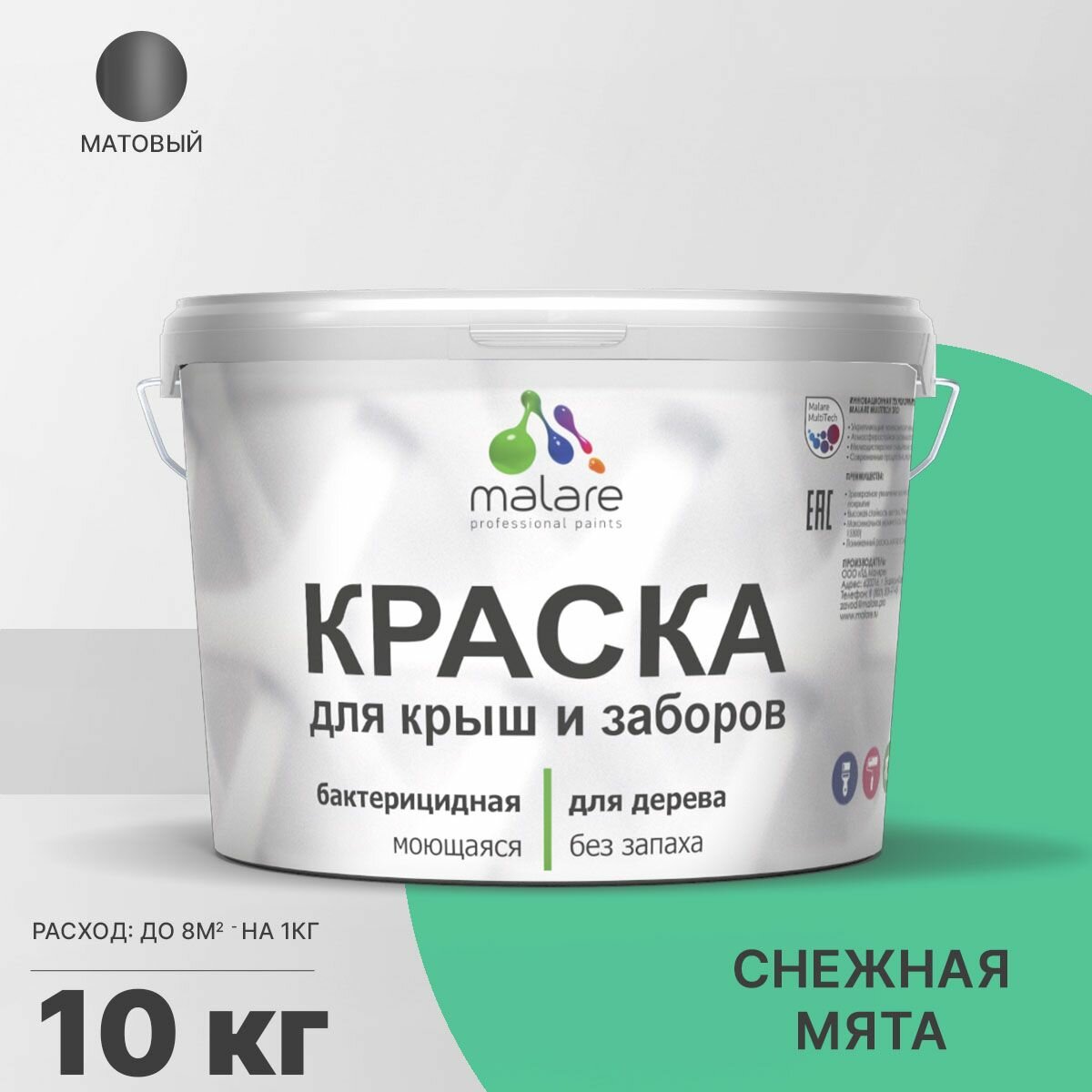 Краска Malare для деревянного забора, для крыши из шифера, для деревянных и минеральных поверхностей, с антисептическим эффектом, быстросохнущая, без запаха, матовая, мятный леденец, 1 кг.