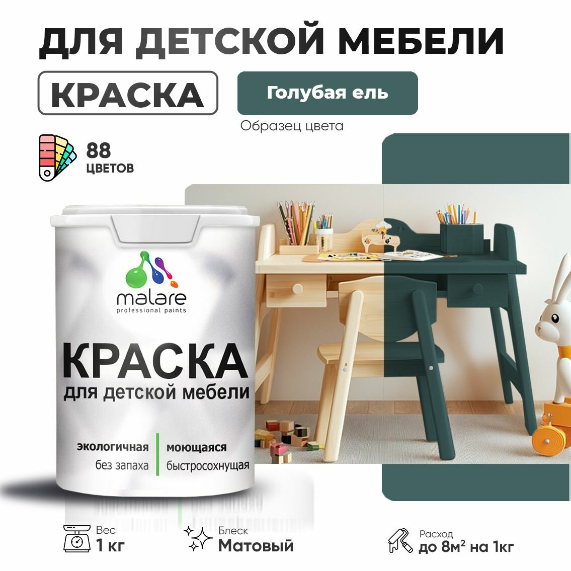 Купить Акриловая краска Malare для детской мебели для кухонных фасадов, мебели из дерева, моющаяся, быстросохнущая без запаха матовая, голубая ель, 1 кг