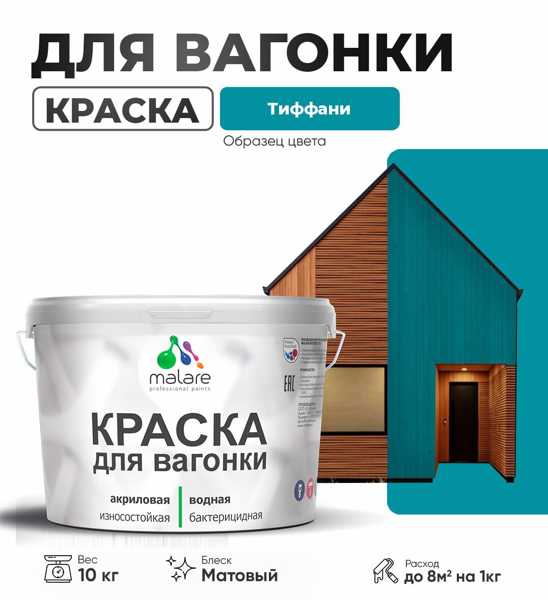 Купить Акриловая краска для вагонки Malare для дерева, для фасадов и интерьера с антисептическим эффектом, быстросохнущая, без запаха, матовая, тиффани, 10 кг