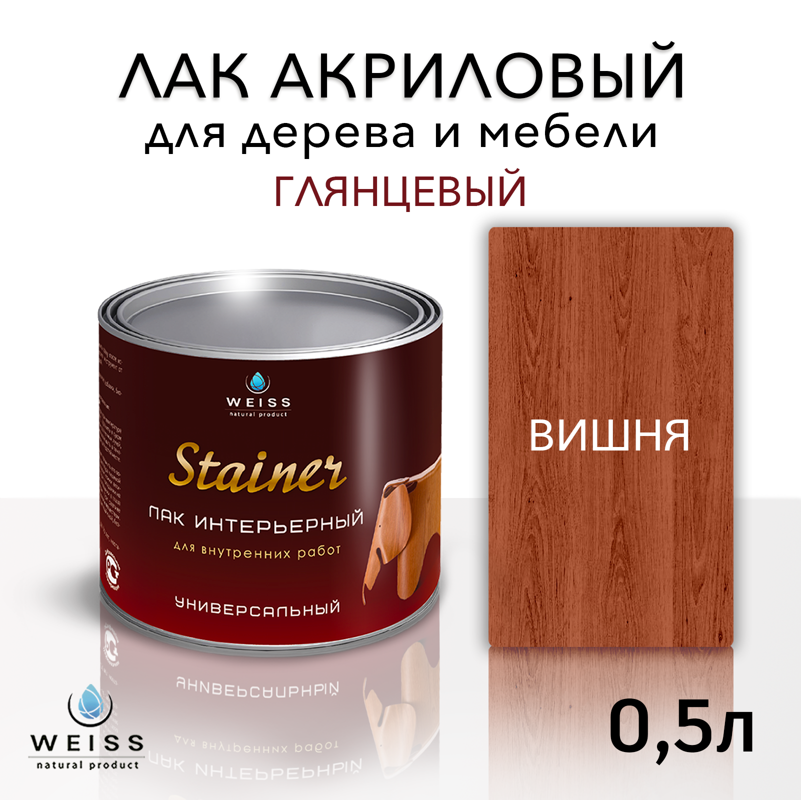Купить Лак для дерева акриловый вишня, глянцевый, Weiss natural product, без запаха, самовыравнивающийся, 0.5л