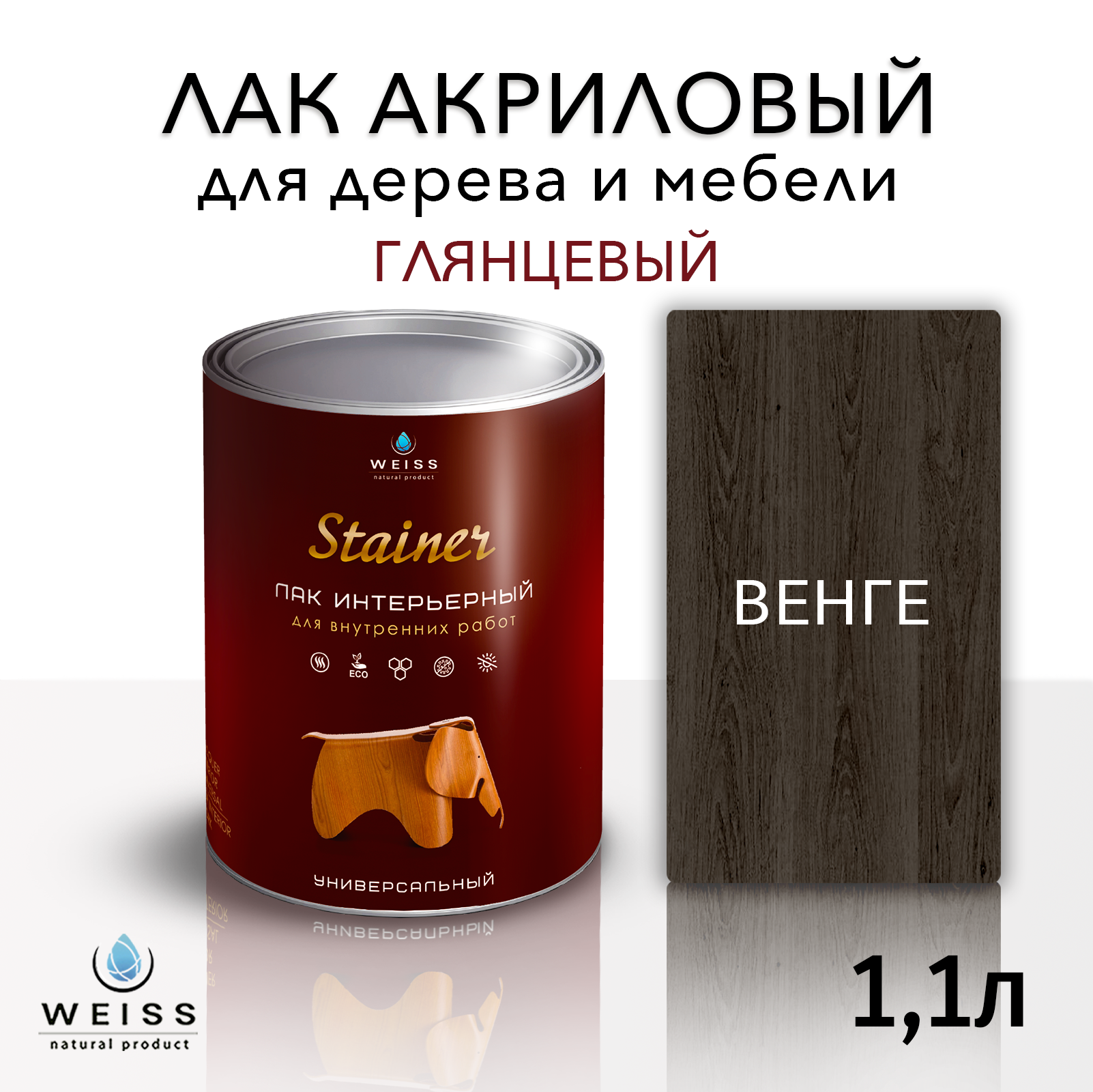 Купить Лак для дерева акриловый венге, глянцевый, Weiss natural product, без запаха, самовыравнивающийся, 1.1л