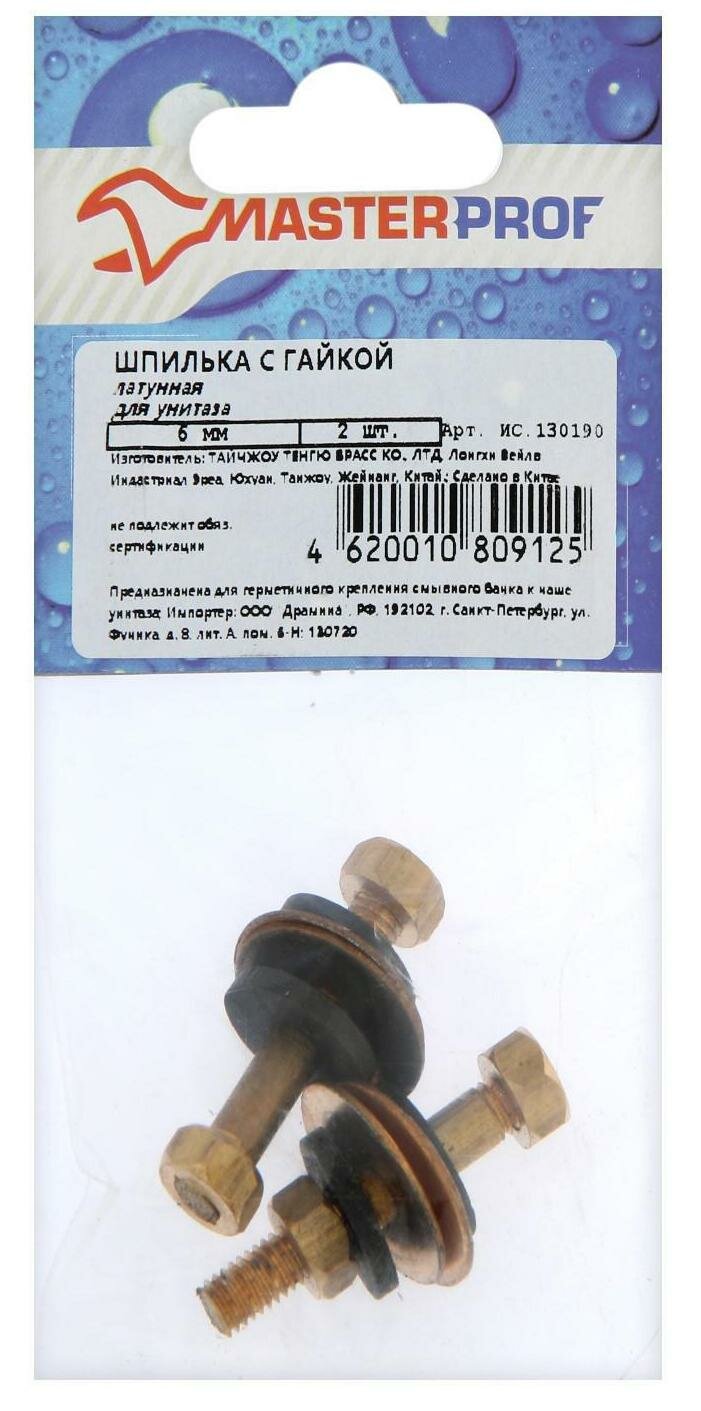 Купить Шпилька "MasterProf" 6мм с гайками для унитаза латунная 2шт ИС-130190 5514272