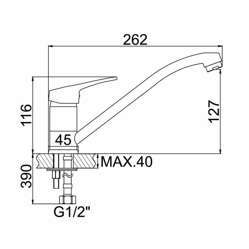 Cмеситель для кухни A4150, однорычажный, с гайкой, латунь, хром