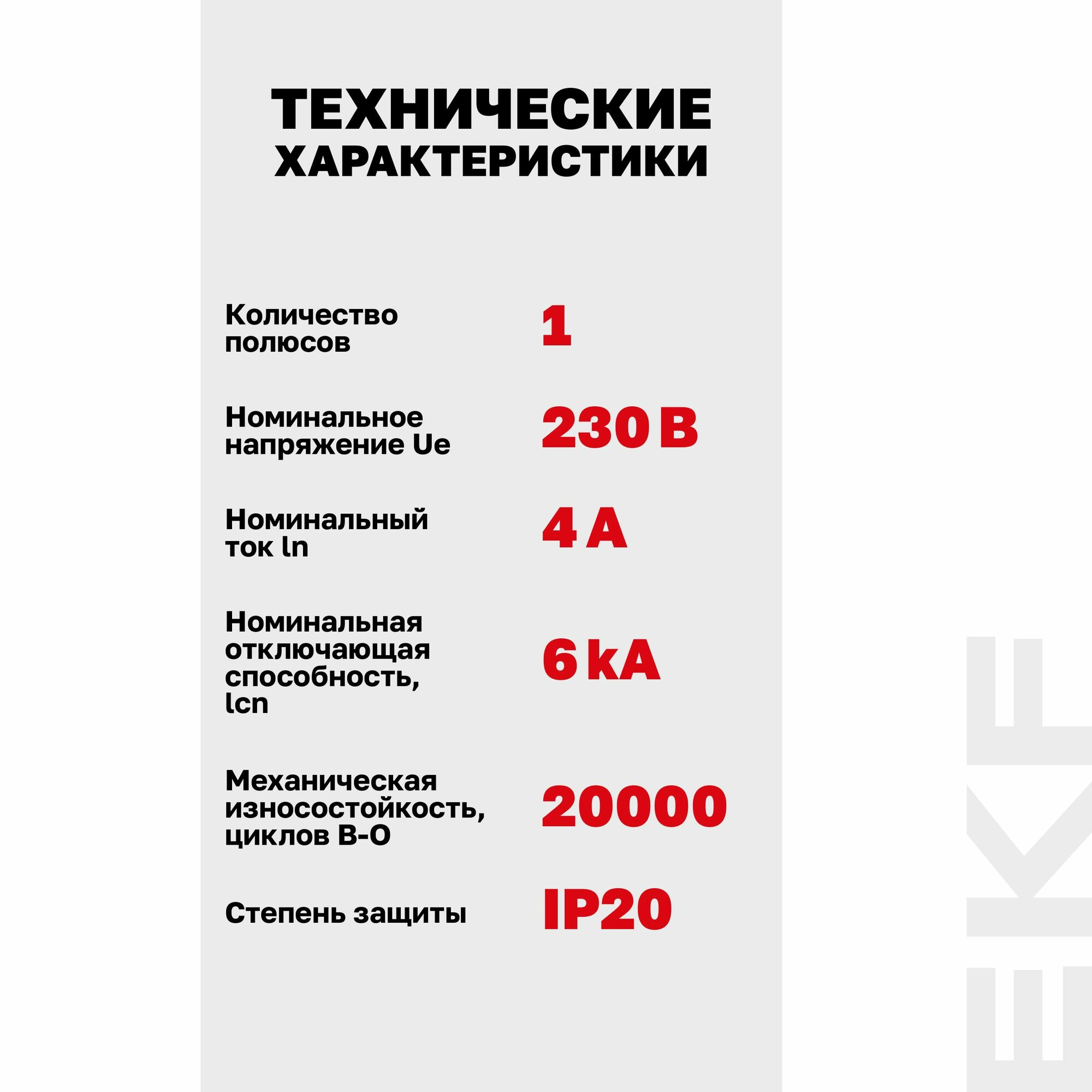 Купить Автомат 4А, тип C, однополюсный 1P, 6кА, cо встроенной опломбировкой клемм EKF PROxima ВА 47-63N (Автоматический выключатель C4)
