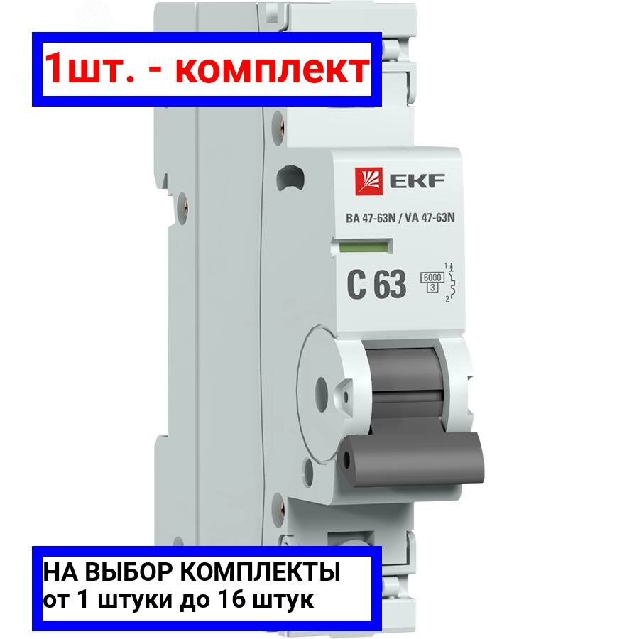 Купить Выключатель автоматический 63А 1П однополюсный характеристика C 6кА ВА 47-63N M636163C EKF PROxima