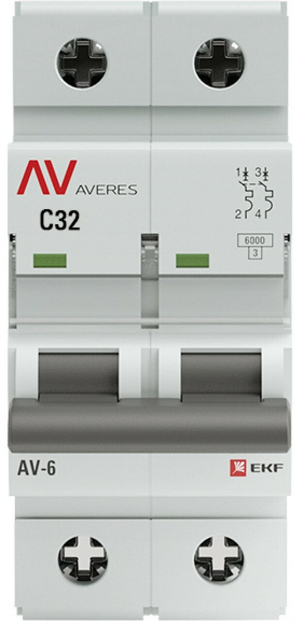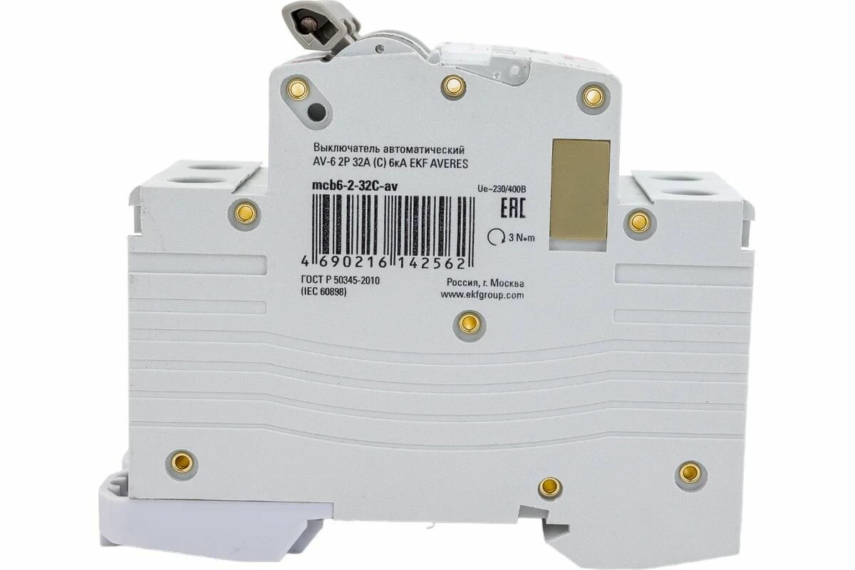 Выключатель автоматический AV-6 2P 32A (C) 6kA EKF AVERES (арт. mcb6-2-32C-av)