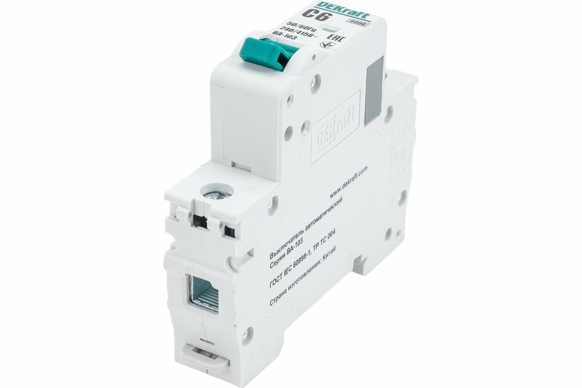 Автоматический выключатель Dekraft BA-103 (12269DEK) 1P 6А тип C 6 кА 230-400 В на DIN-рейку