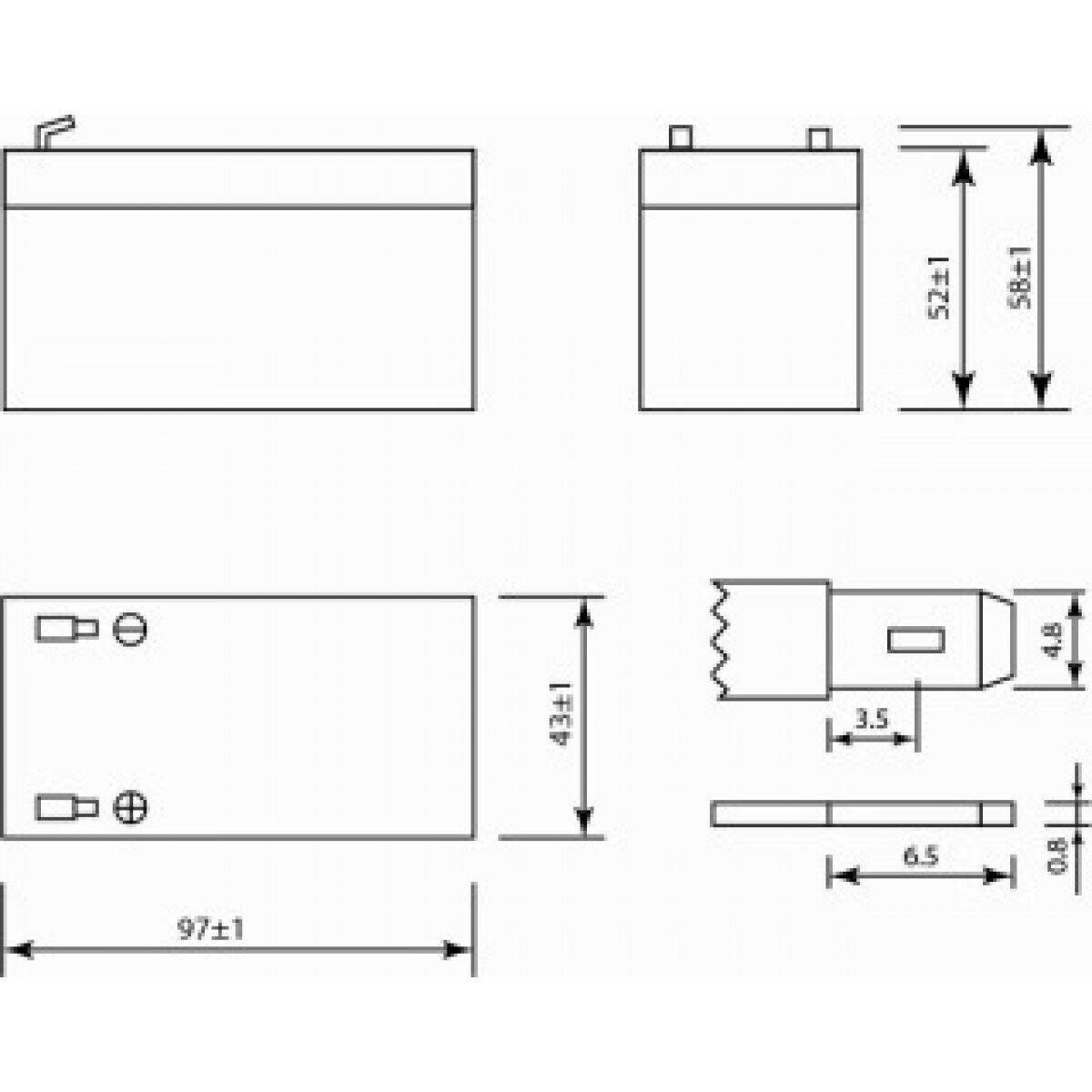 | Высота с учетом полюса (контактного вывода) | 52 мм / 58 мм |