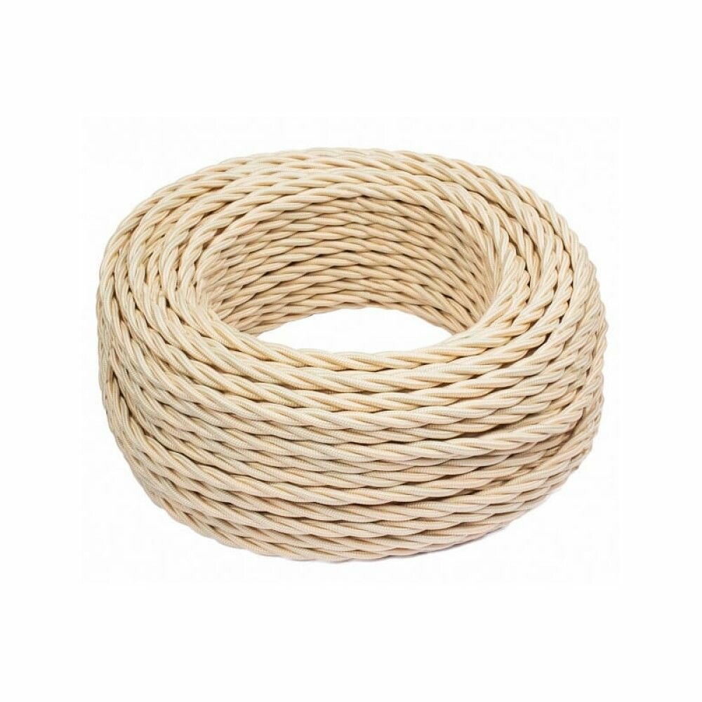Ретро кабель витой BIRONI 2х1.5, 50 метров. Песочное золото