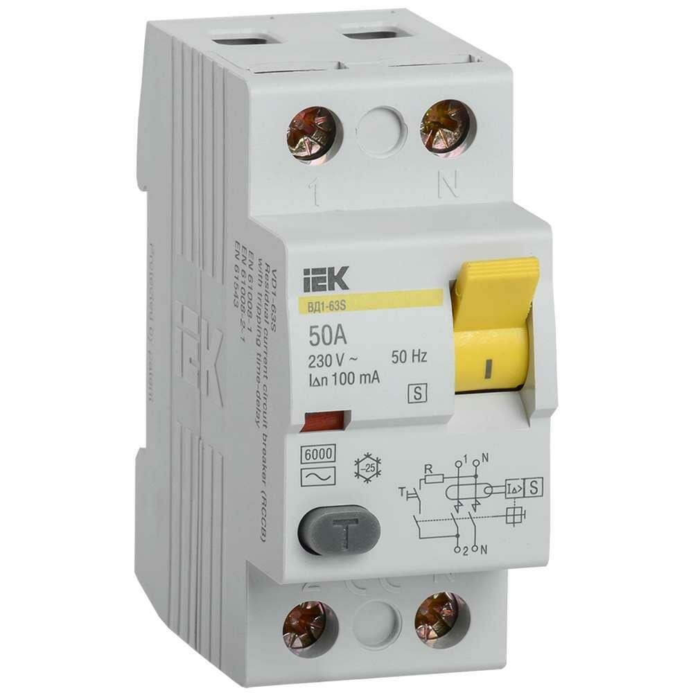 УЗО IEK ВД1-63S 2P 50А, 100 мА ( S ), MDV12-2-050-100