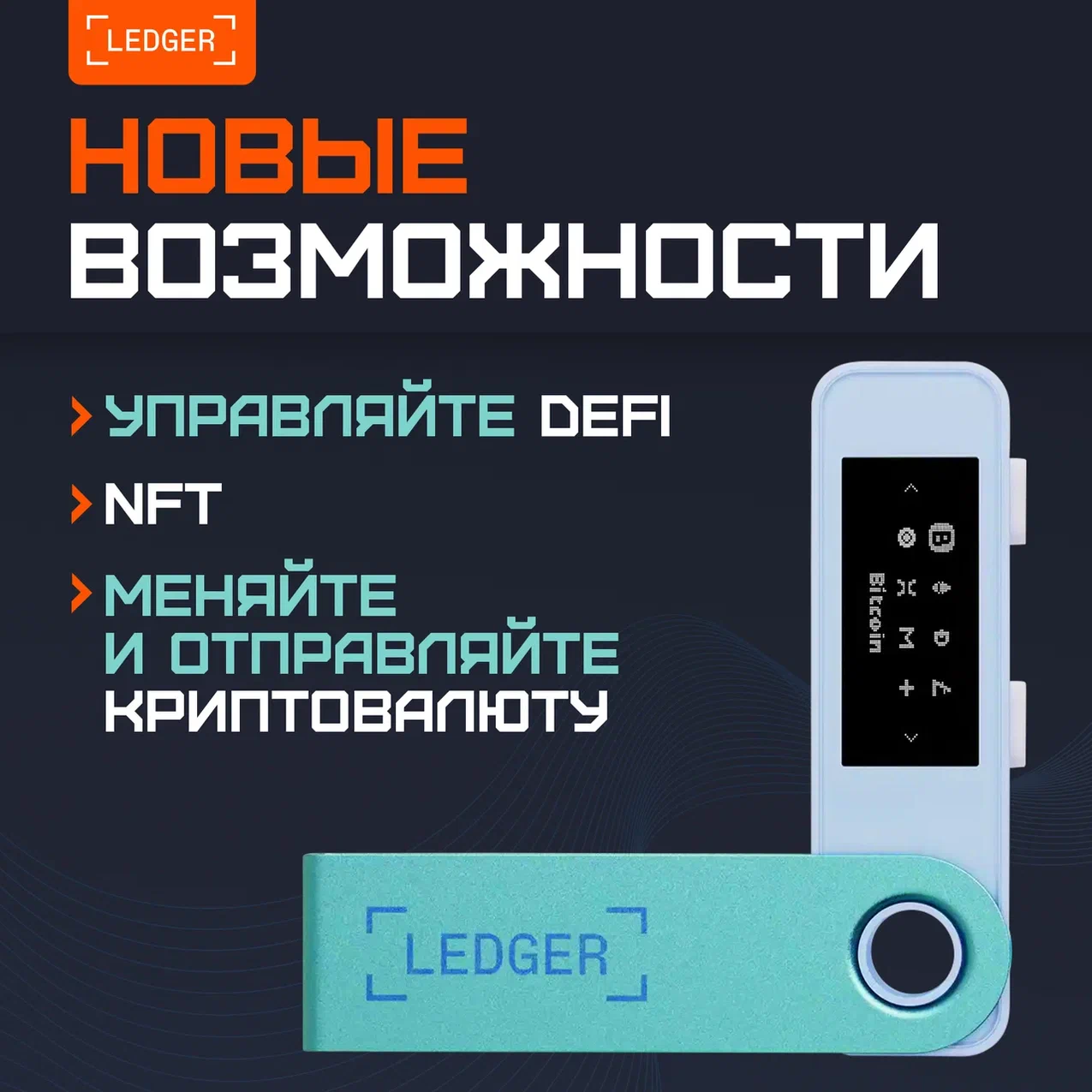 Аппаратный криптокошелек Ledger Nano S Plus 2024 BTC Orange - холодный кошелек для криптовалют оранжевый (в цвет биткойна)