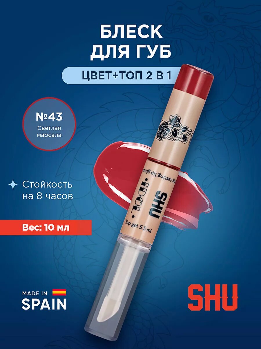 SHU Блеск для губ стойкий IDOL №43, светлая марсала
