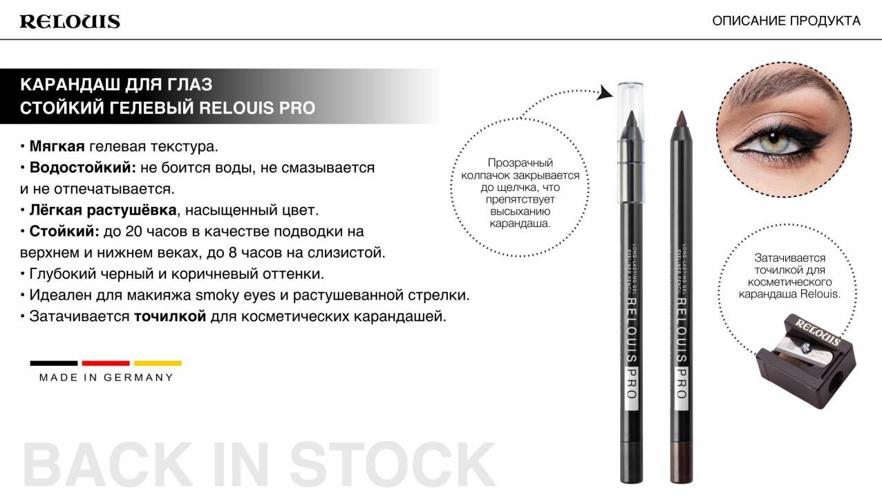 Карандаш для глаз Relouis стойкий гелевый тон 01 (Black) интересное: