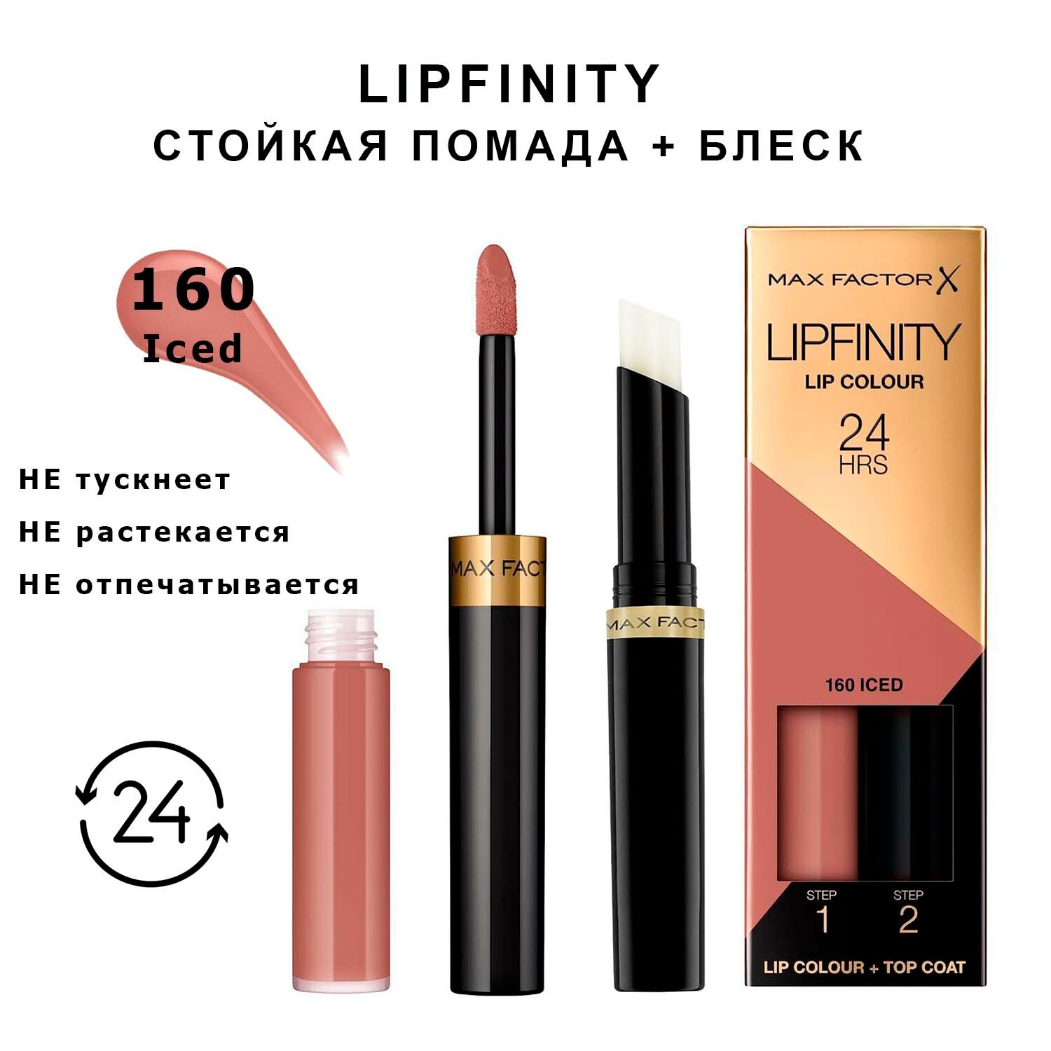Макс Фактор / Max Factor - Помада+Блеск для губ Lip Colour Lipfinity тон 160 Iced 4,2 г