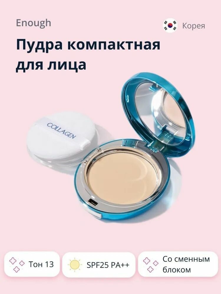 Пудра компактная для лица ENOUGH COLLAGEN HYDRO MOISTURE TWO-WAY CAKE SPF25 PA++, со сменным блоком, тон 13