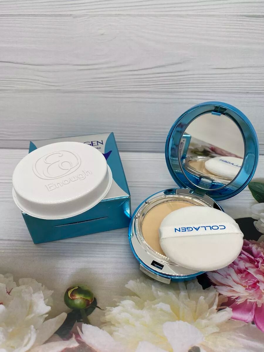 ENOUGH Увлажняющая пудра Enough с коллагеном, тон №21 натуральный бежевый + запасной блок