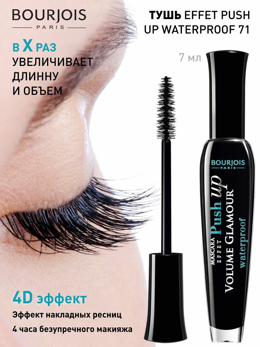 Тушь для ресниц водостойкая Push Up Waterproof, Black 713 интересное: