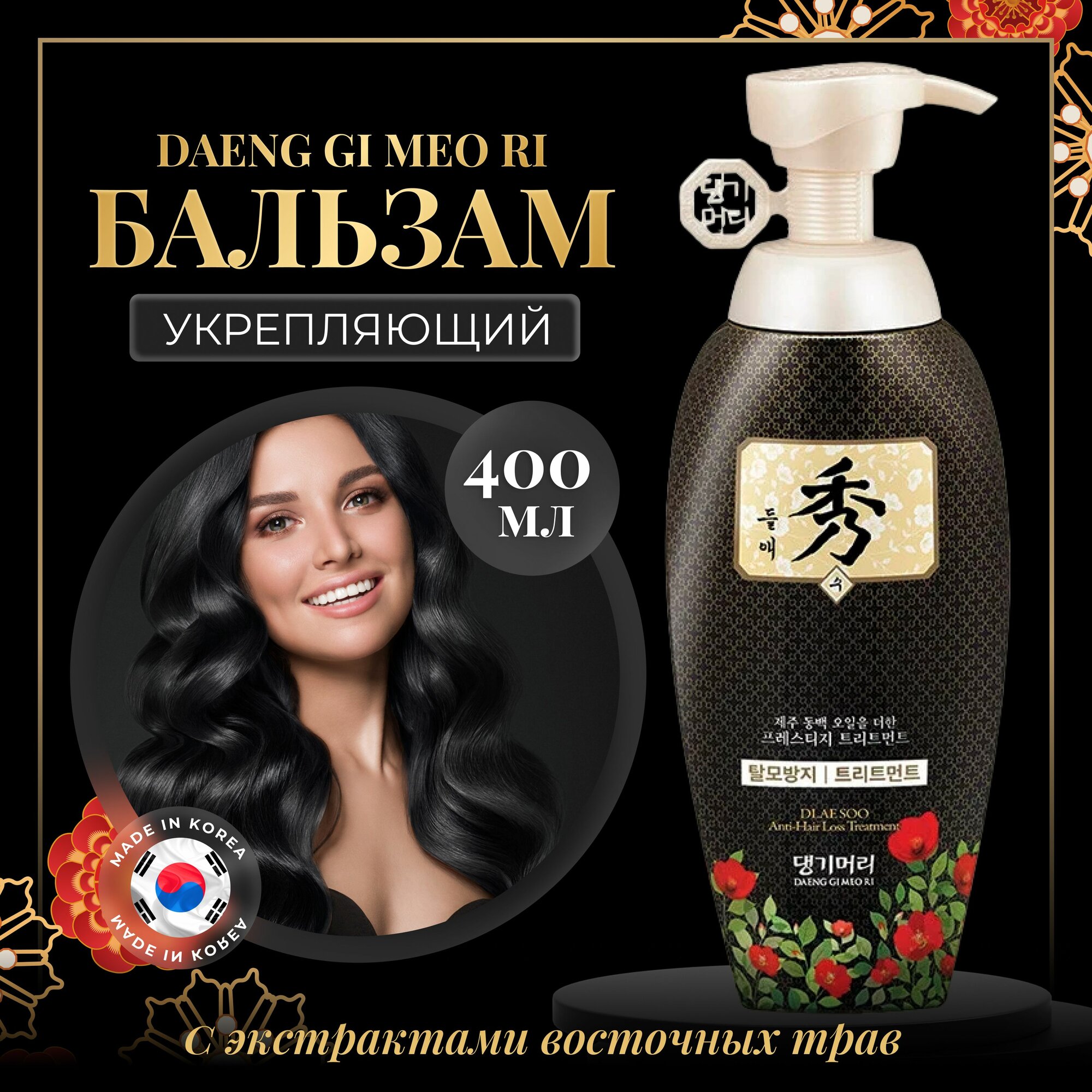 Кондиционер ополаскиватель для волос женский укрепляющий Корея, DAENG GI MEO RI, 400 мл с маслом камелии и экстрактами восточных трав
