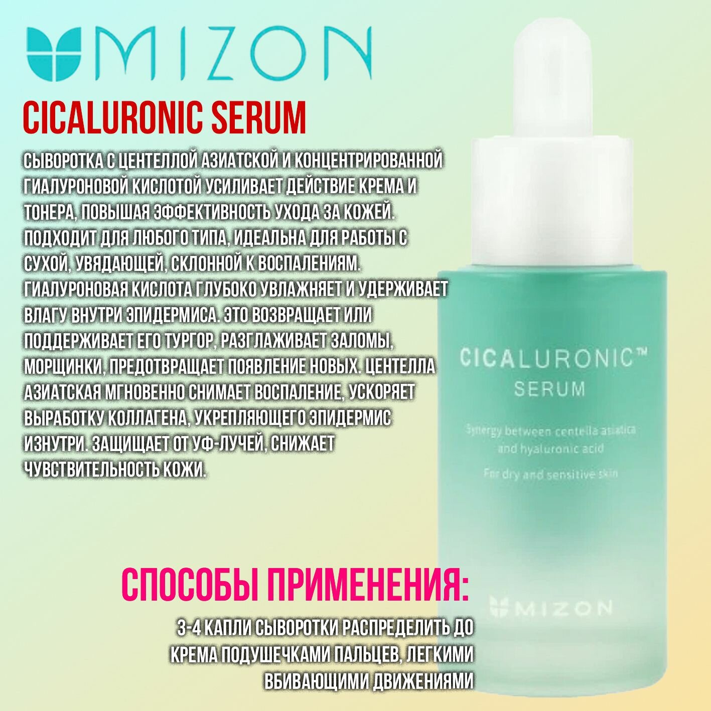 MIZON CICALURONIC SERUM Сыворотка с экстрактом центеллы азиатской и гиалуроновой кислотой 30мл