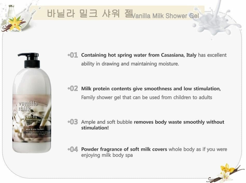 WELCOS Гель для душа Body Phren Shower Gel Vanilla Milk (Ванильное Молоко) 500 мл