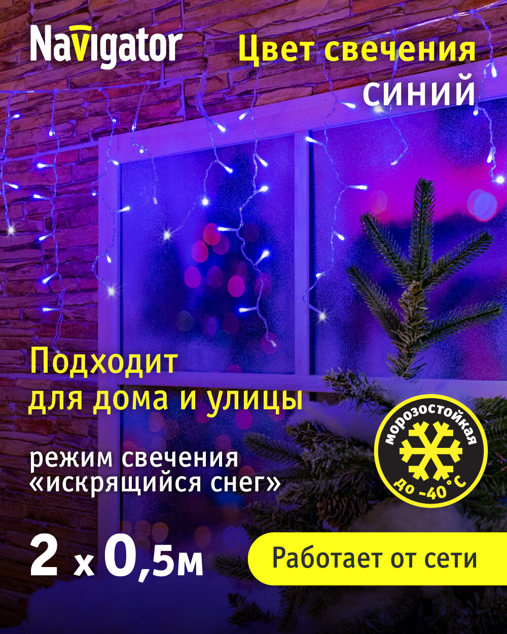 Гирлянда «Бахрома» Navigator 93 643, искрящийся снег, синий свет, 2*0.5 м, IP44