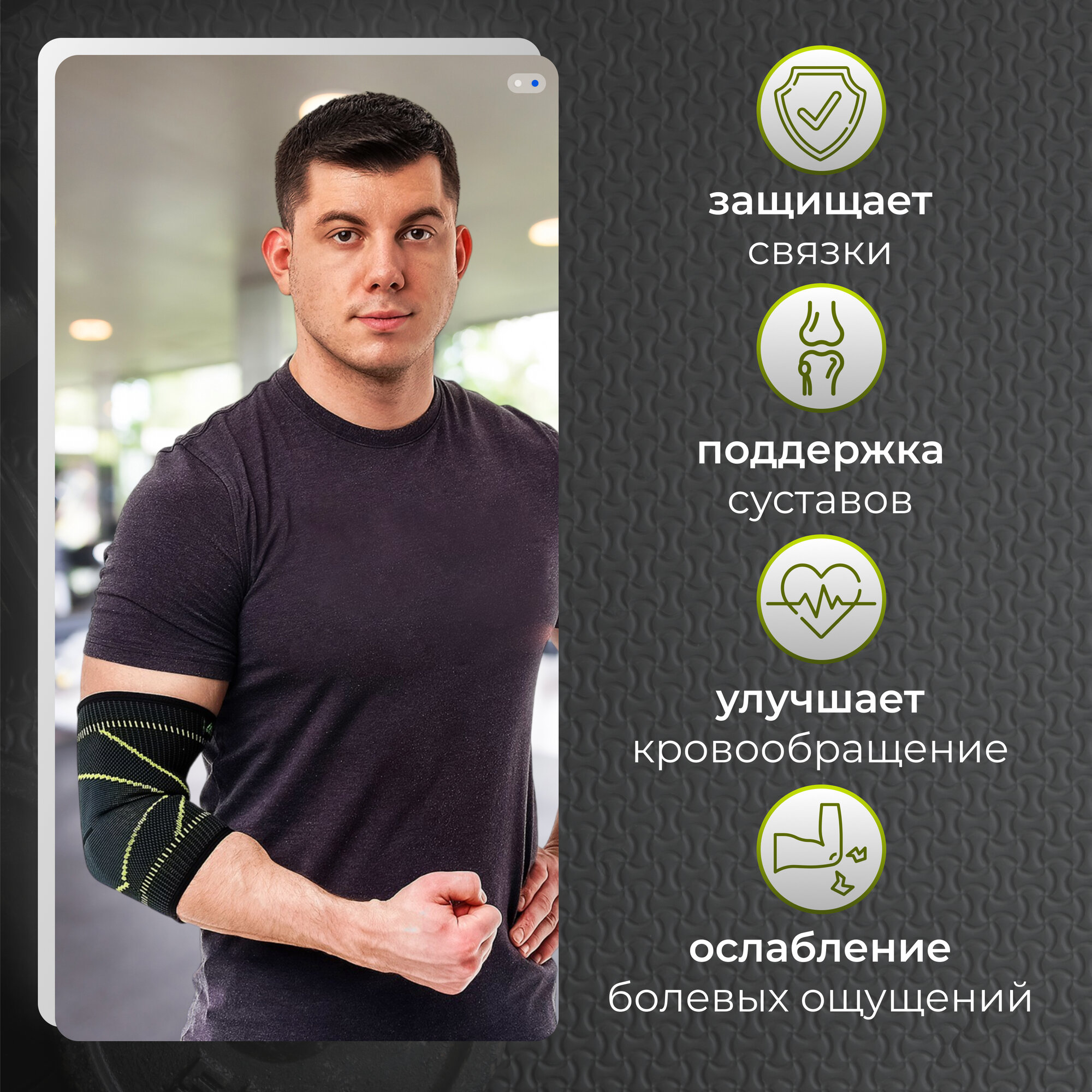 Суппорт локтя, размер универсальный (1 шт), цвет чёрный/салатовый 2791325 .