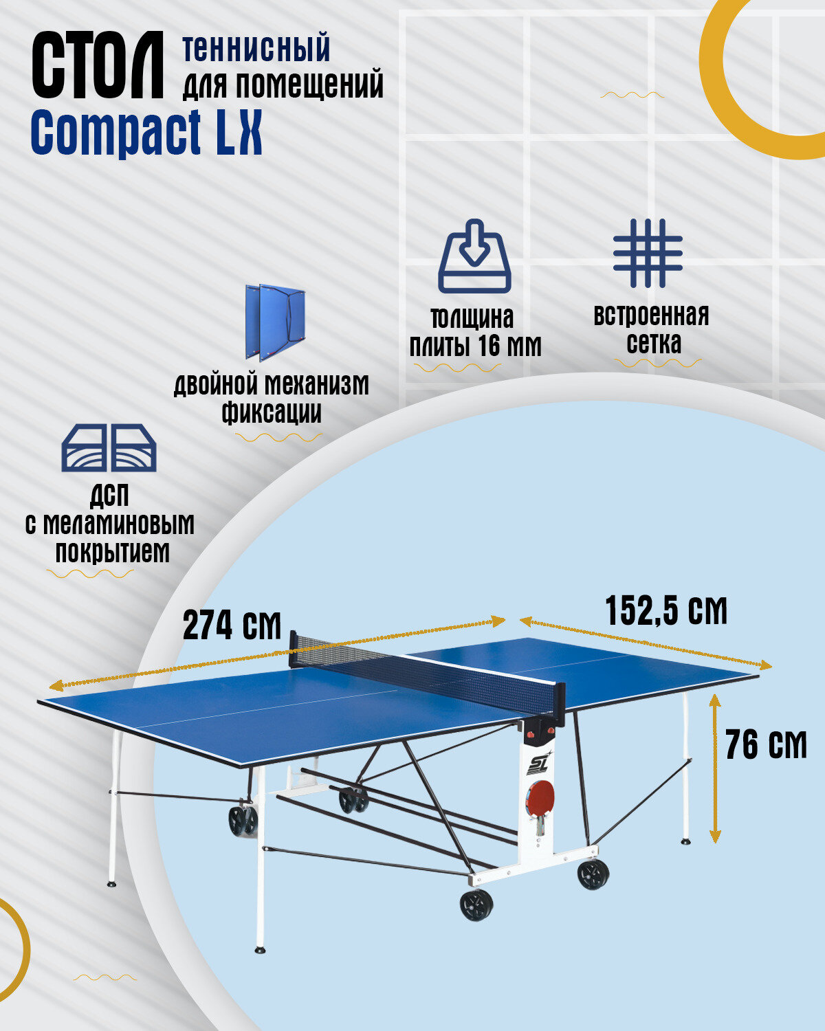 Теннисный стол START LINE *COMPACT LX c сеткой Blue б/к