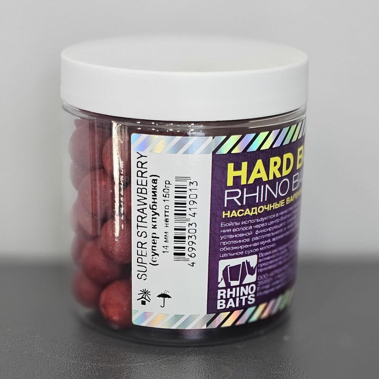 Купить RHINO BAITS Бойлы насадочные Super Strawberry (супер клубника), 14 мм, банка 150 гр