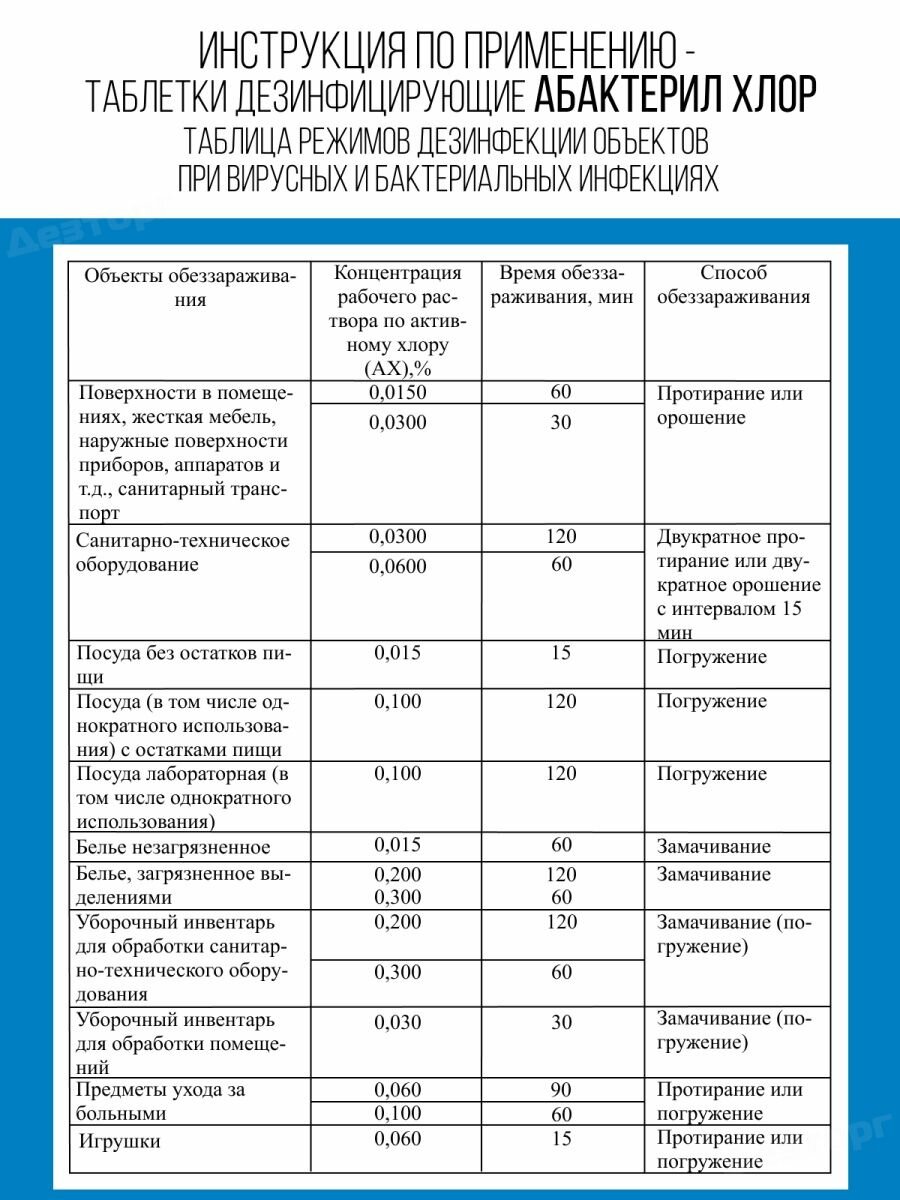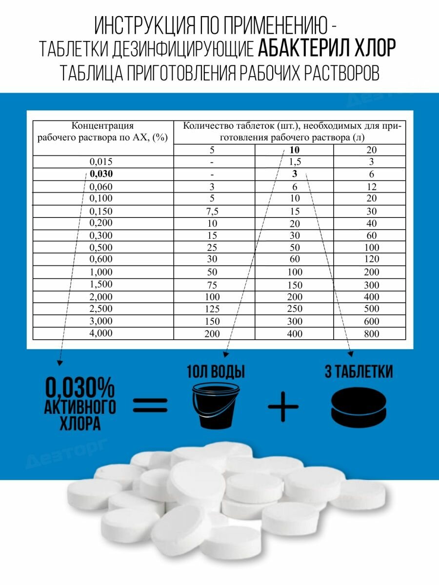 10 шт. Дезинфицирующее средство с вирулицидной активностью ГОСТ 12.1.007-76 Абактерил-Хлор таблетки 300 шт 1 кг.,
