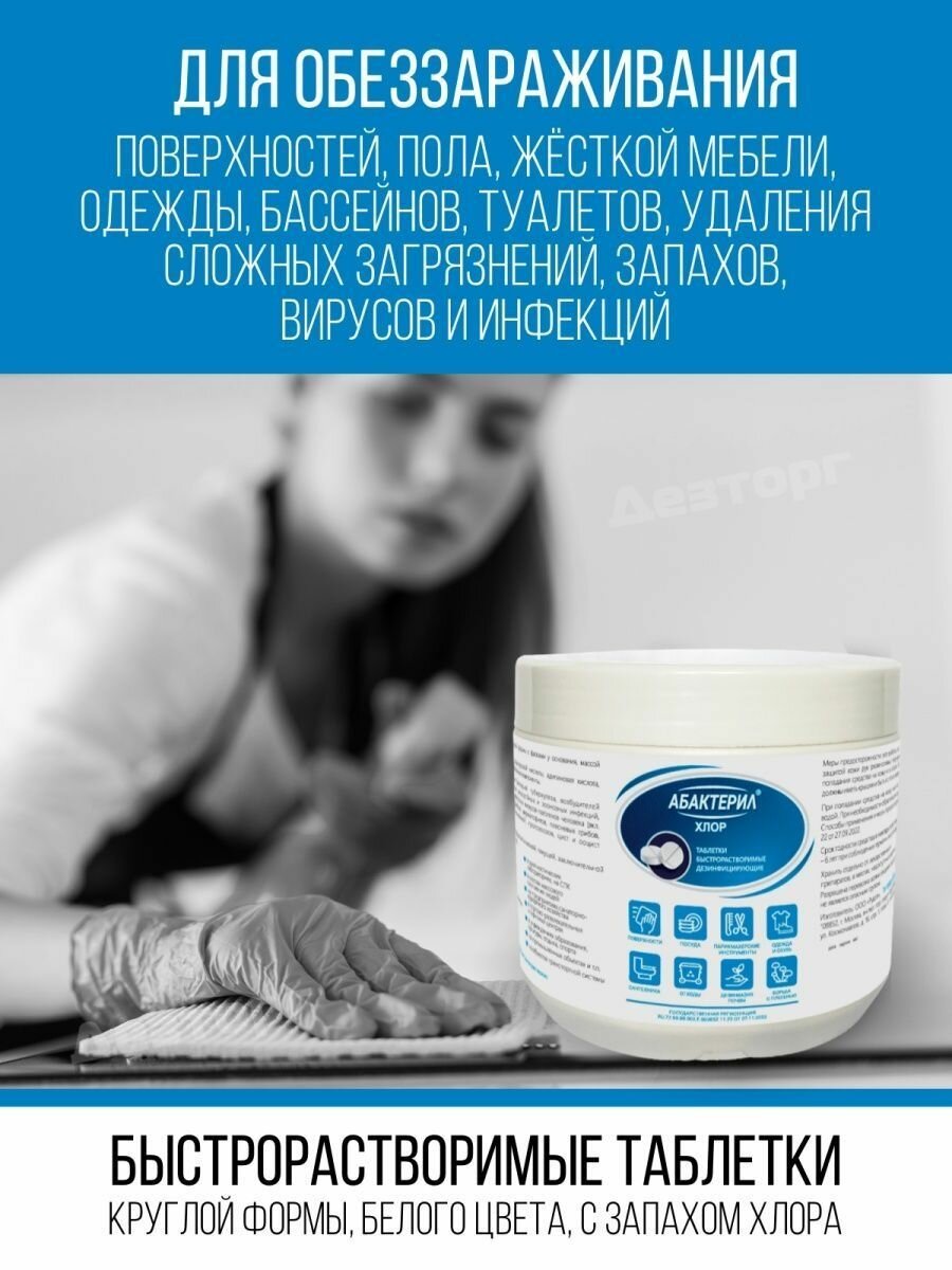 8 шт. Дезинфицирующее средство с вирулицидной активностью ГОСТ 12.1.007-76 Абактерил-Хлор таблетки 300 шт 1 кг.,