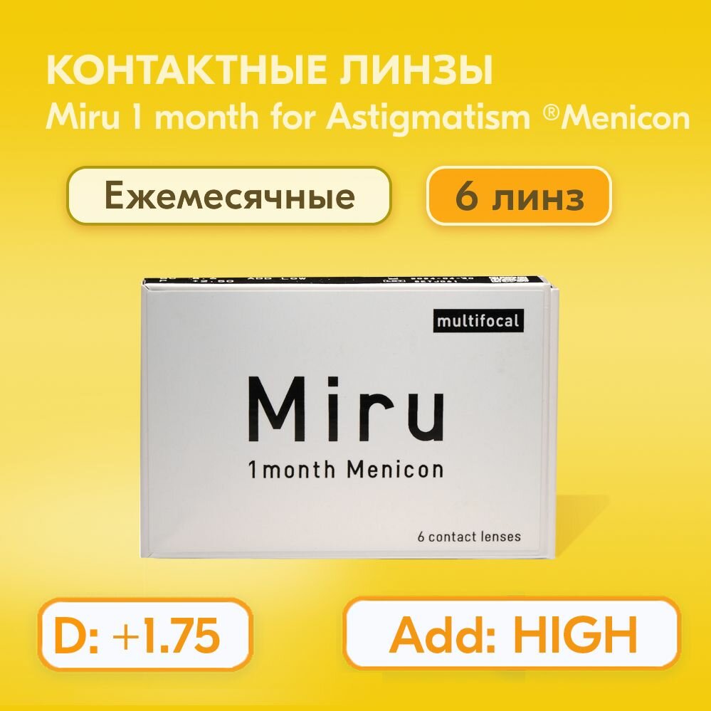 Контактные линзы MIRU 1 Month Multifocal HIGH, -1.75, Кривизна 8.6 / Мультифокальные / Ежемесячные 6 шт.