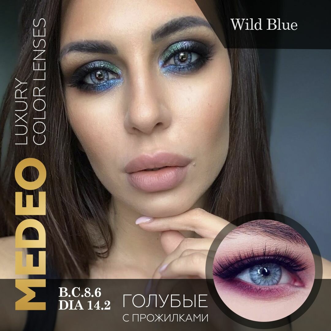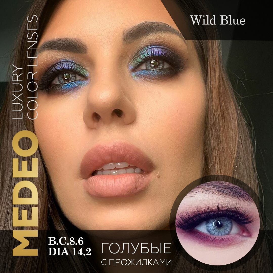 Купить Цветные контактные линзы Medeo Wild Blue 3 месяца, -5.00 / 14.2 / 8.6, голубой, с прожилками 2 шт.