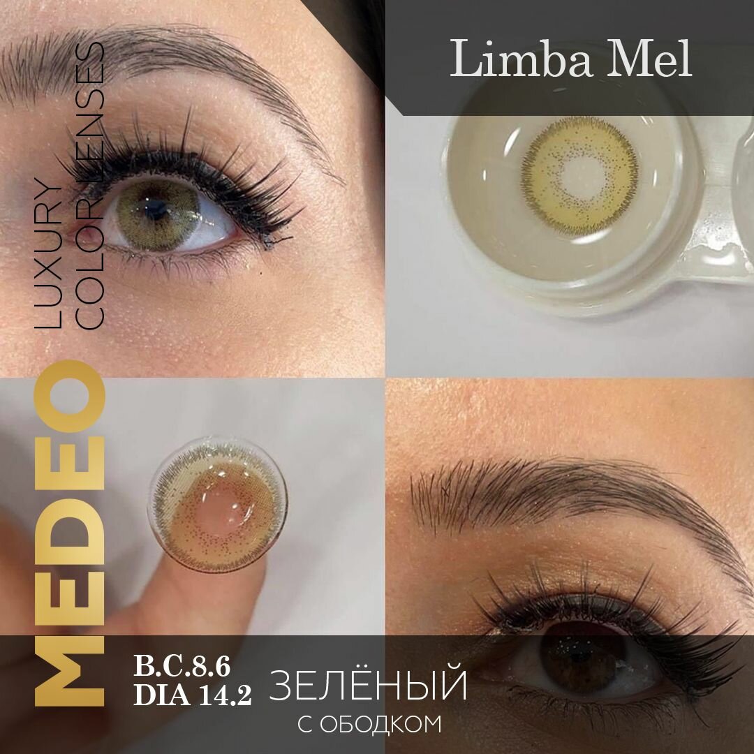 Купить Цветные контактные линзы Medeo Limba Mel 3 месяца, -1.5 / 14.2 / 8.6, зелёный, с ободком, 2 шт.