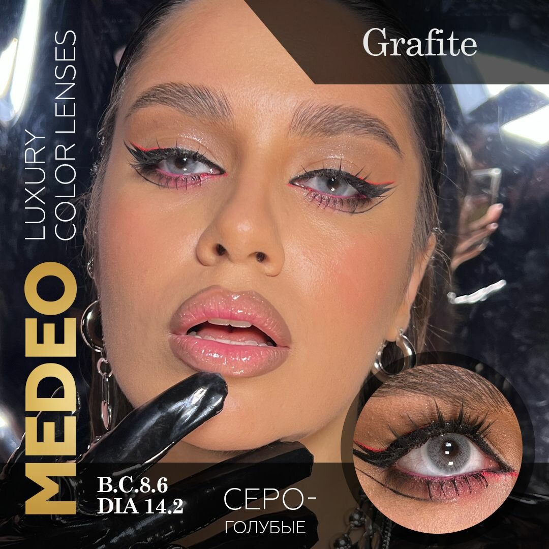 Цветные контактные линзы Medeo Grafite 3 месяца, -2.50 / 14.2 / 8.6, серый, 2 шт.