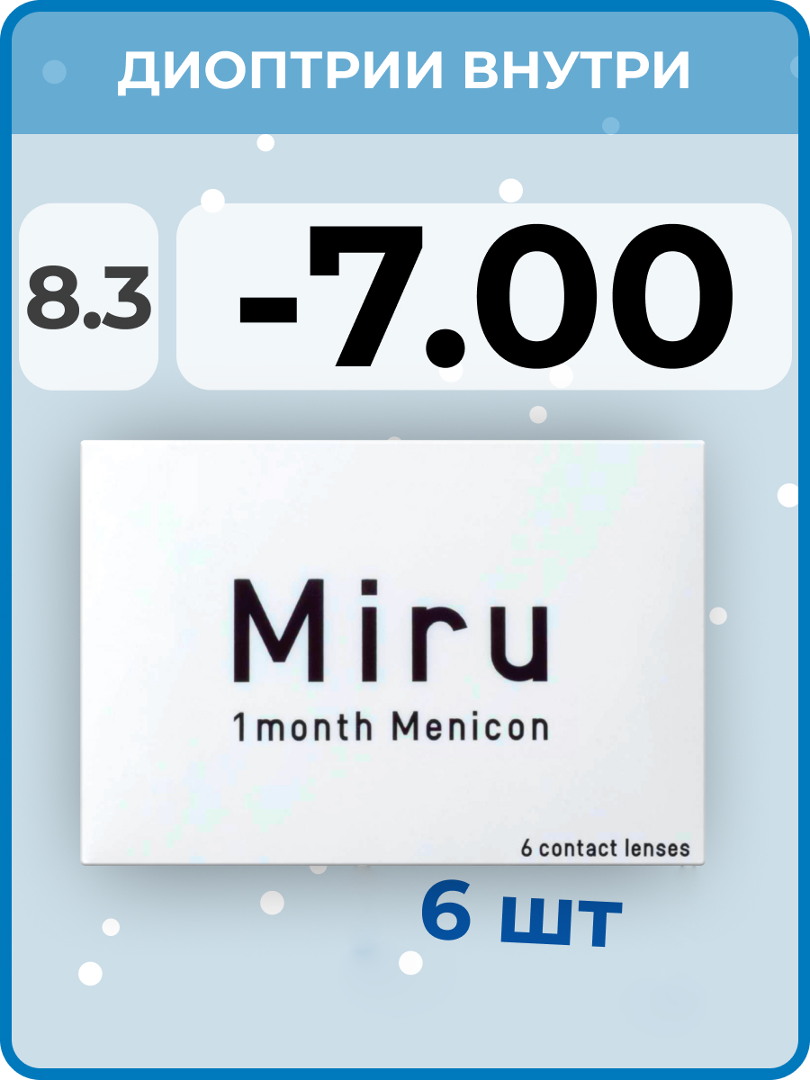 Купить Контактные линзы на месяц Miru 1 month, 8.3, 6 шт. -7.00