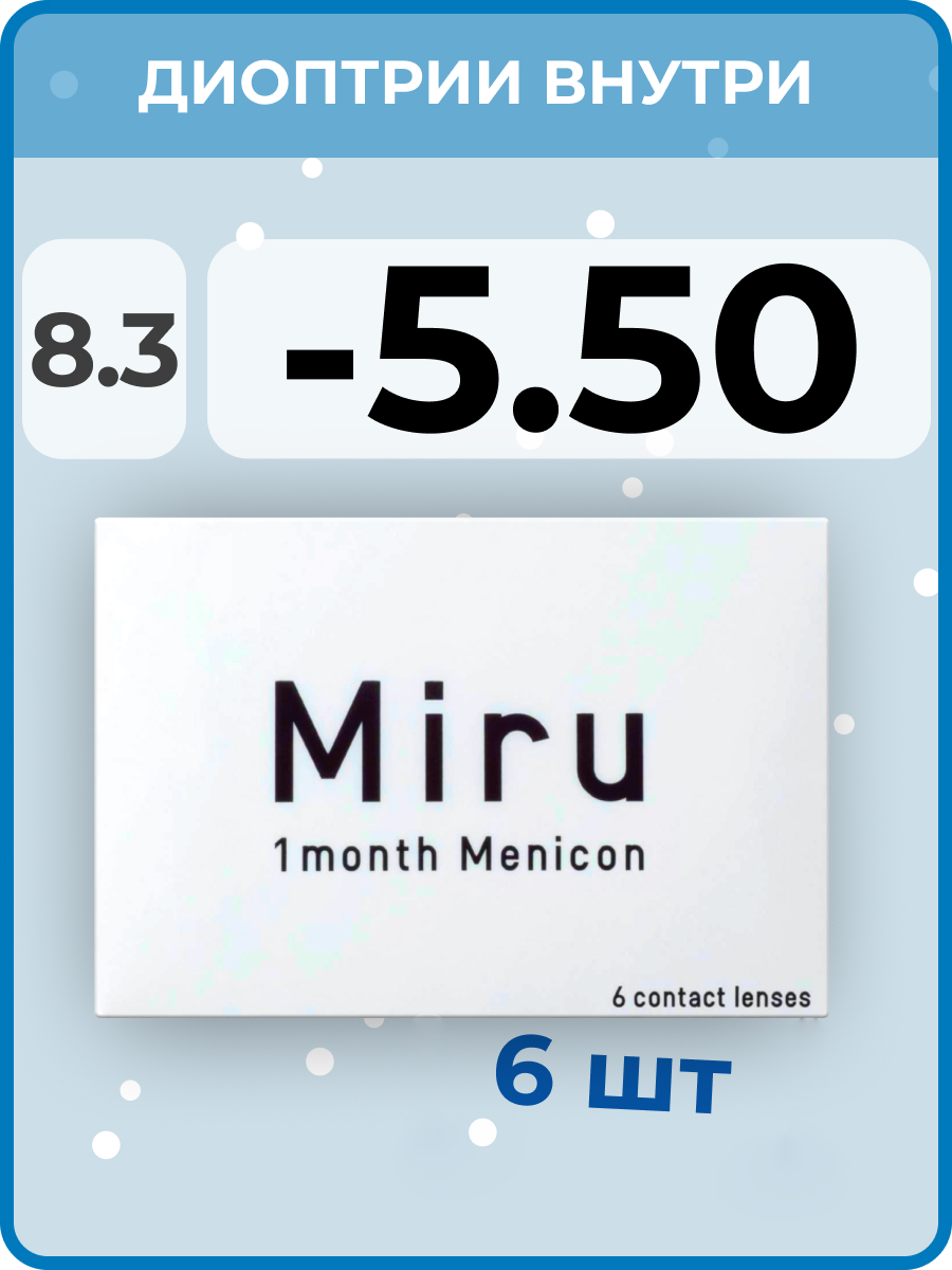 Контактные линзы мягкие Miru 1 month Menicon -5,50/8,3/6 шт. на месяц