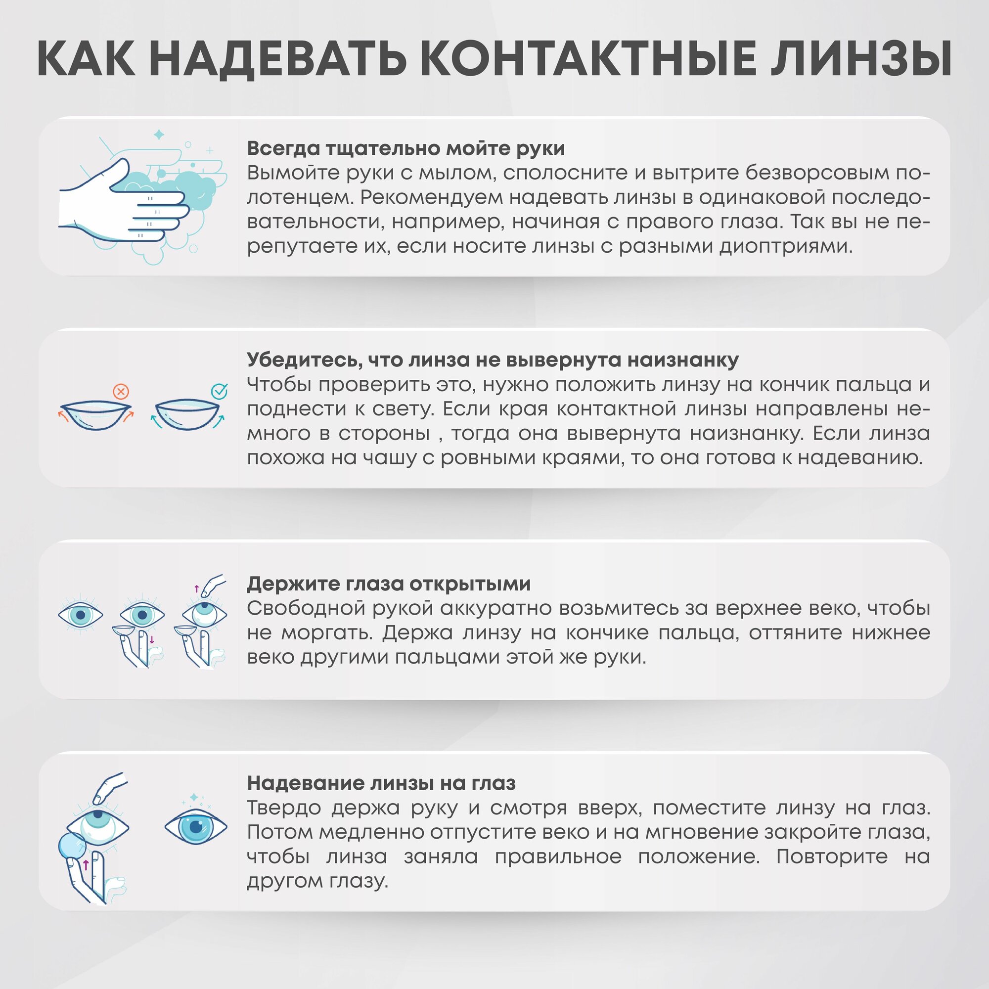 | Плюсы: | не краснеют и не испытывают дискомфорт глаза от длительного ношения |