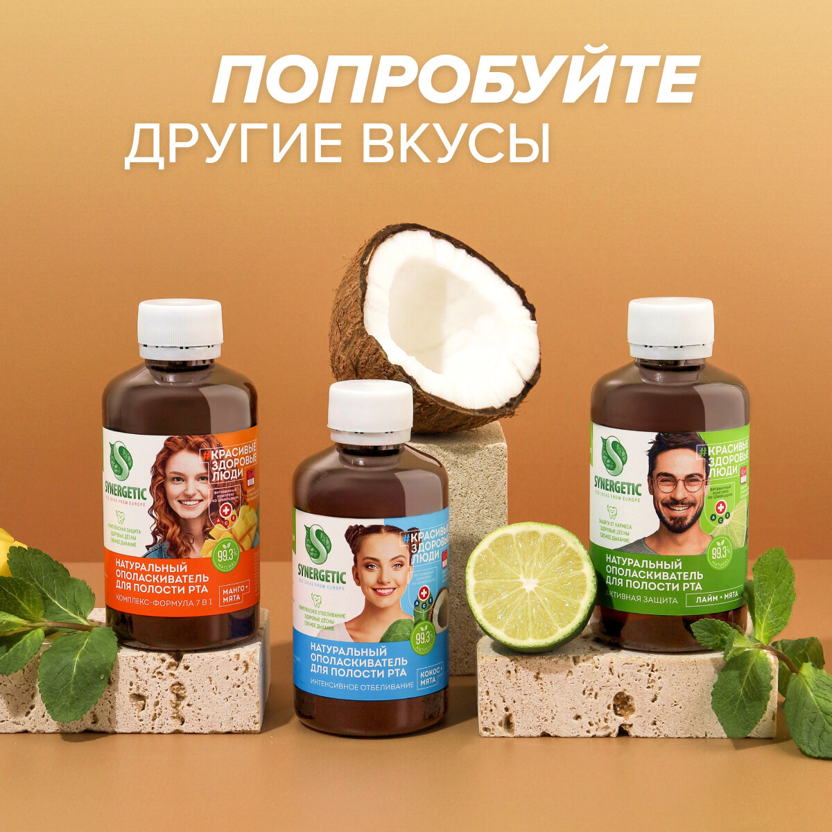 Ополаскиватель для полости рта SYNERGETIC активная защита "лайм + мята" натуральный, без фтора, 200мл