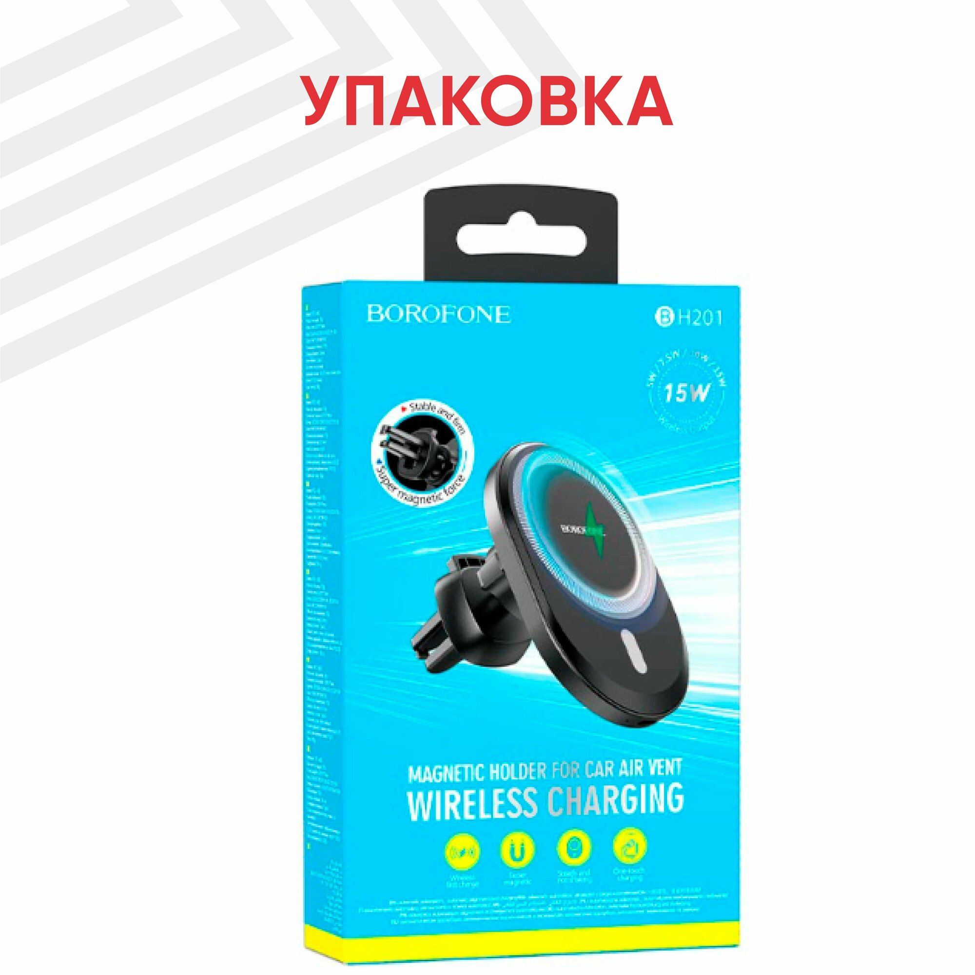 Купить Автомобильный держатель с БЗУ Borofone BH201 Magnetic, магнитный, на панель, воздуховод, 15Вт, черный