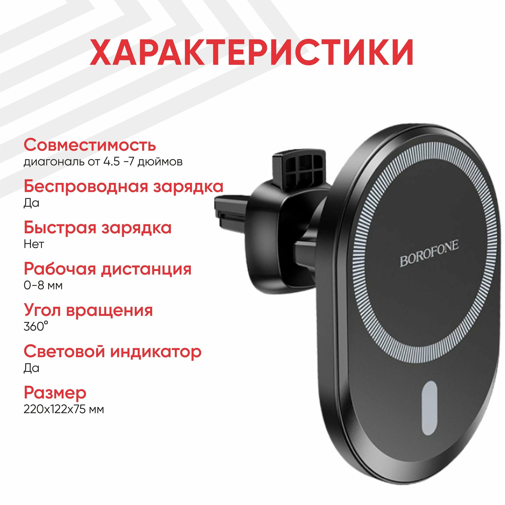 СохранитьАвтомобильный держатель с БЗУ Borofone BH201 Magnetic, магнитный, на панель, воздуховод, 15Вт, черный интересное: