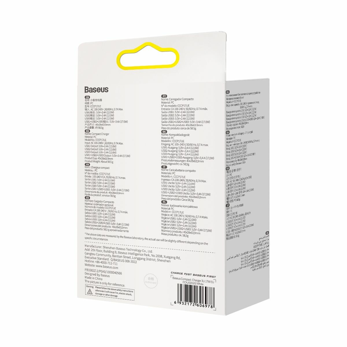 Сетевое зарядное устройство BASEUS Compact Charger 3U 3xUSB, 3.4A, 17W, белый