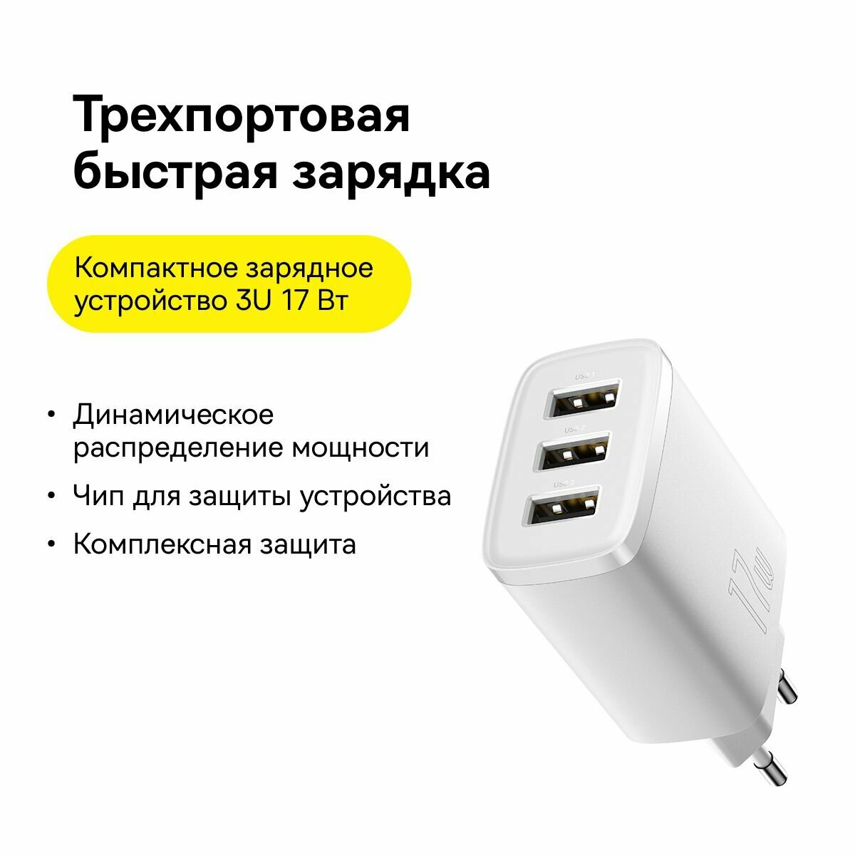 Сетевое зар. устр. Baseus Compact 17W 3USB (CCXJ020102) белое