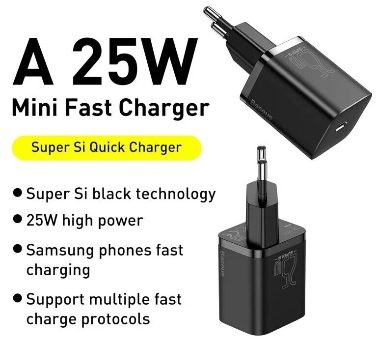 сетевое зарядное устройство Baseus Super Si Quick Charger 1C 25W EU Sets черный