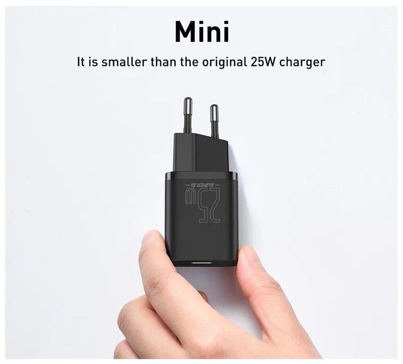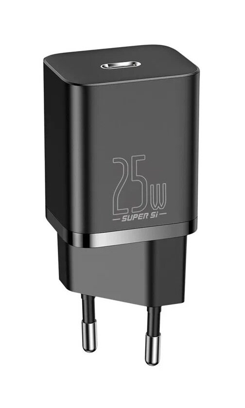 Сетевое зарядное устройство/Быстрая зарядка Baseus Super Si Quick Charger Type-C 25W (EU) Sets Black (With Mini White Cable Type-C to Type-C 3A 1m Black) TZCCSUP-L01