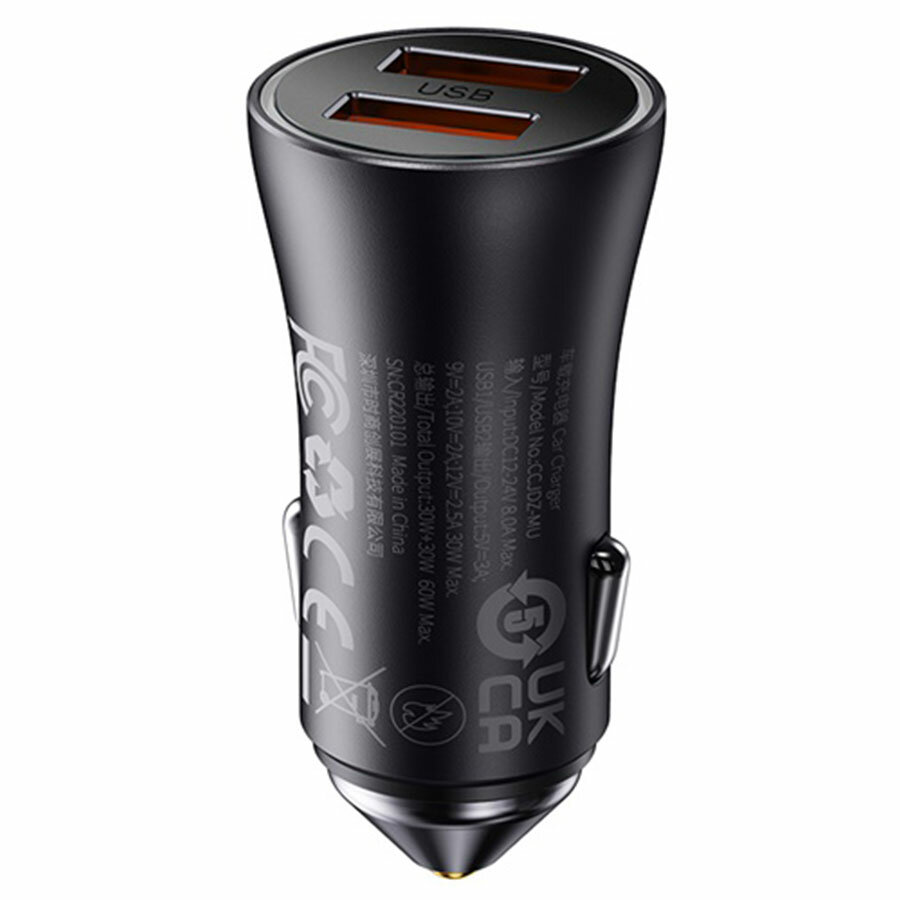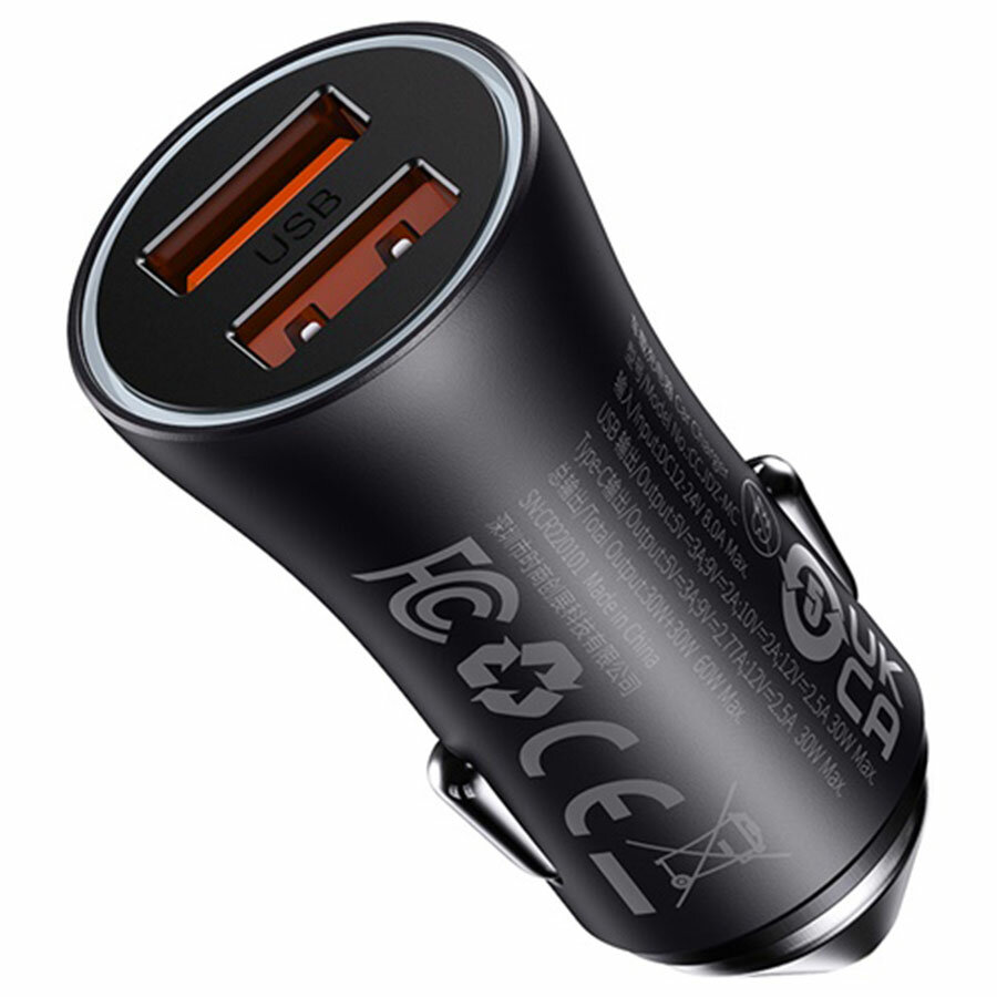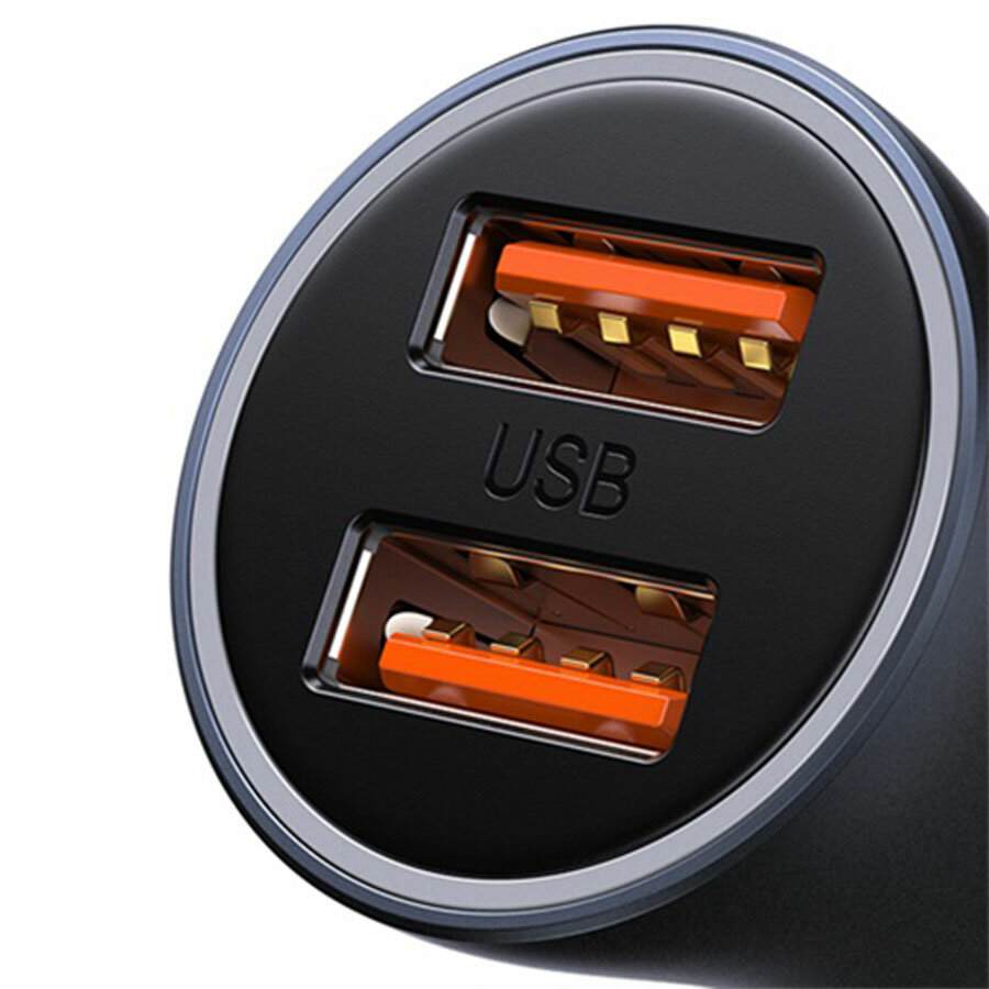 СохранитьАвтомобильное заряд. устр. Baseus Golden Contactor Max Dual Fast Charger 2USB 60W (CGJM000013) серое интересное: