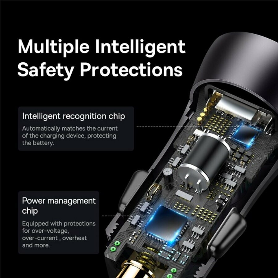 Автомобильное заряд. устр. Baseus Share 1USB/1C 3.4A 60W CCBT-C0G черное