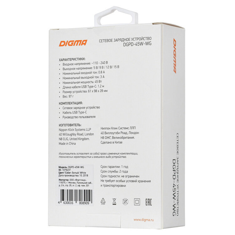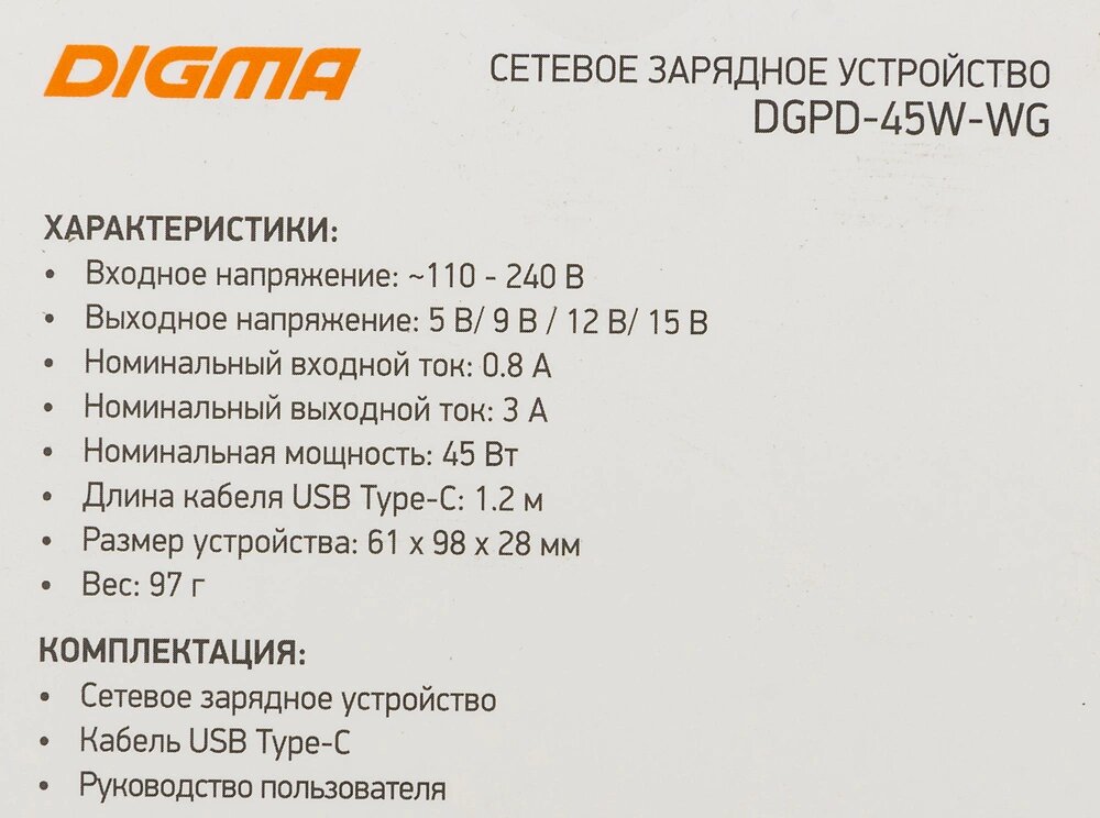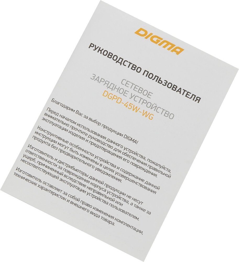 зарядное устройство DIGMA DGPD-45W-WG