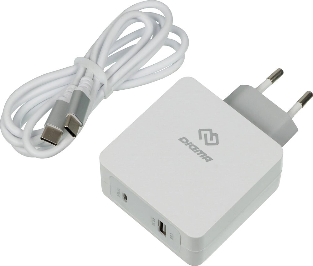 Сетевое зарядное устройство Digma DGPD-45W-WG, USB-C + USB-A, 45Вт, 3A, белый