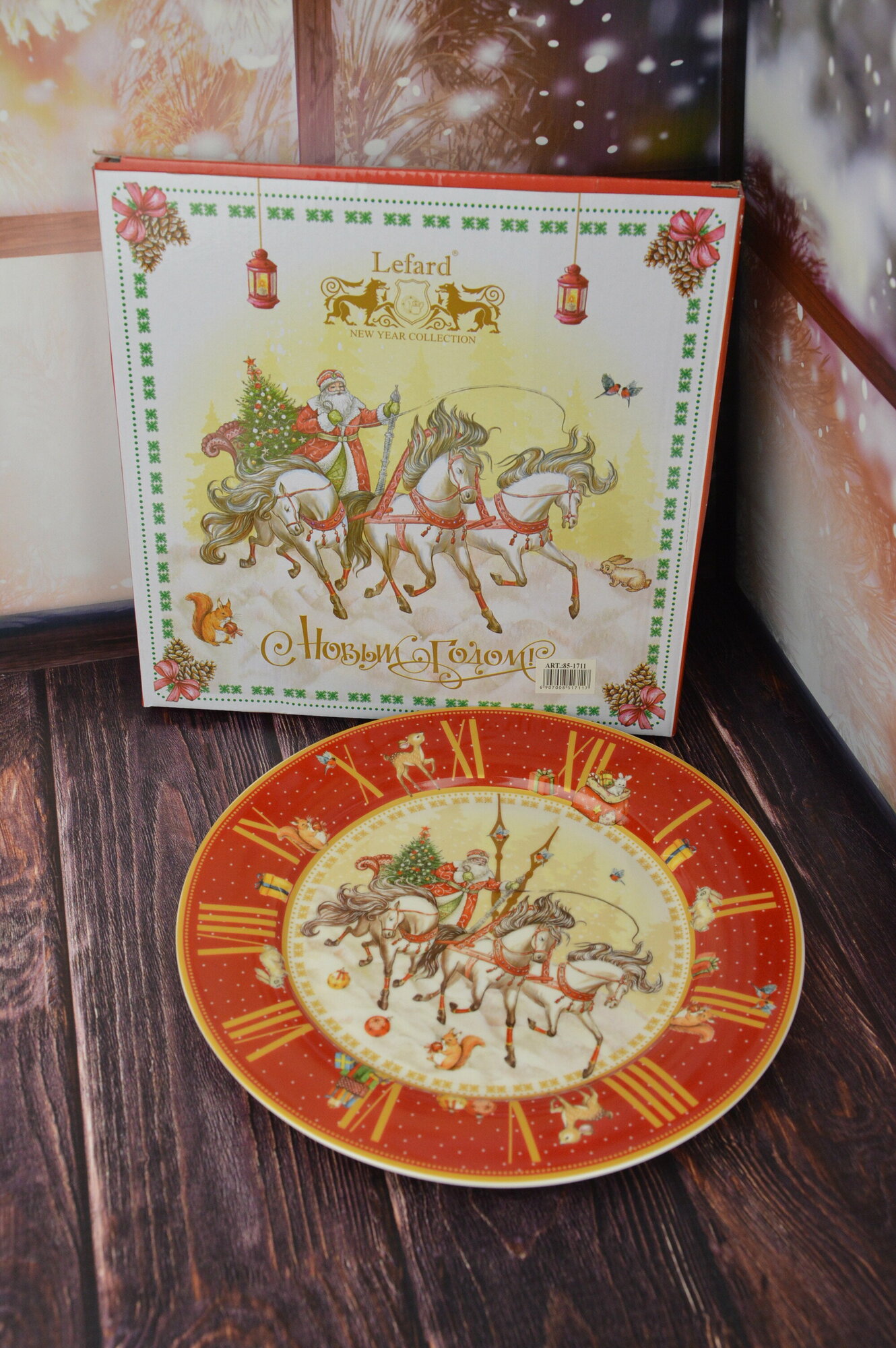 Тарелка обеденная новогодняя Lefard "Тройка" с циферблатом 27 см